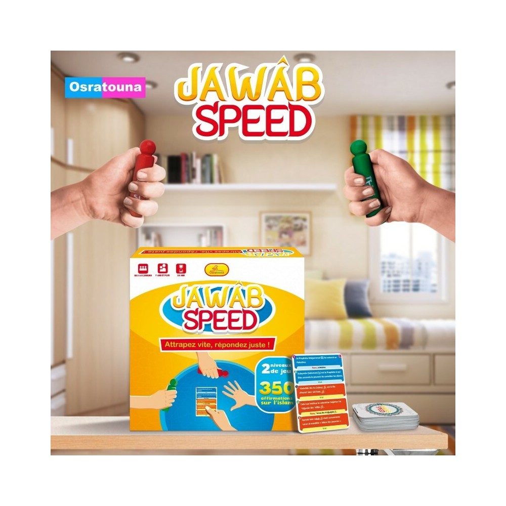Jawâb Speed est un jeu de société qui permet aux petits et aux grands d'approfondir leurs connaissances religieuses tout en s'amusant. Ce jeu d’ambiance saura faire plaisir à toute la famille en s'adaptant à tous les âges et à tous les niveaux.