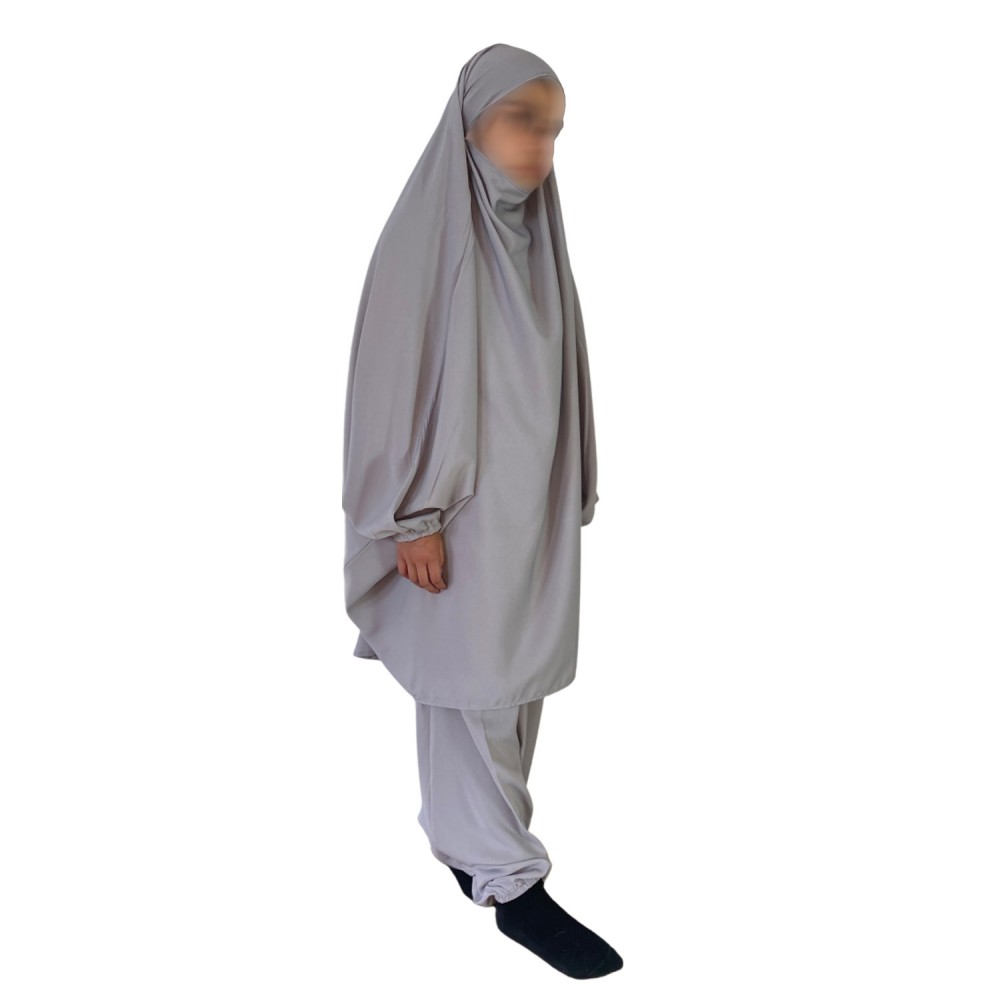 Jilbab 2 pièces enfant (Sarouel + cape Khimar) - GRIS